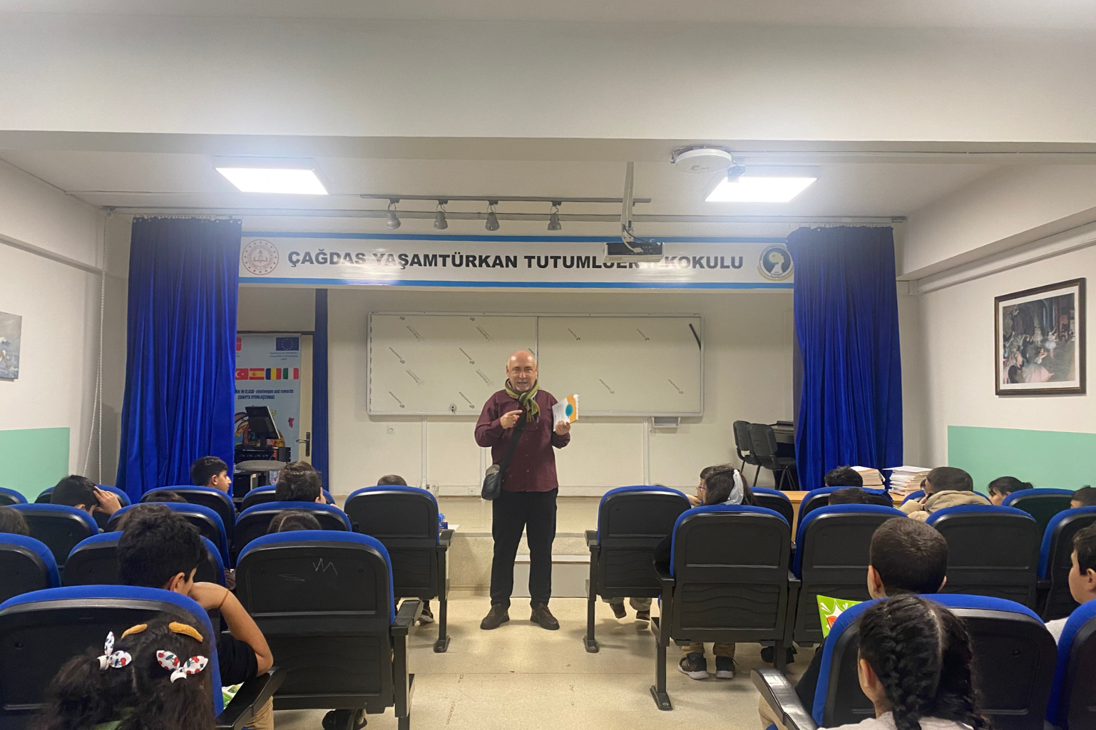 Minik Gezginler İstanbul’u Keşfediyor projemizin yeni dönem planlamasını yapmak amacıyla Sultanbeyli’deki Çağdaş Yaşam Türkan Tutumluer İlkokulu’ndaydık. Projeye gönüllü olarak destek veren uzman rehber Yıldırım Büktel ile beraber okulun 4. sınıf öğrencileriyle bir araya geldik ve projeyi tanıttık. Büktel’in yazdığı ve tek tek öğrenciler için imzaladığı İstanbul Gezi Rehberi kitaplarını dağıtırken, öğrencilerin projenin kazanım sayfalarını doldurmasını sağladık. Öğrencilerimiz, tam da beklediğimiz gibi en çok projenin son ayağı olan Tarihi Yarımada gezisi için heyecanlandılar. Projeye tam destek veren okul müdürümüze, müdür yardımcımıza ve öğretmenlerimize teşekkür ederiz.
