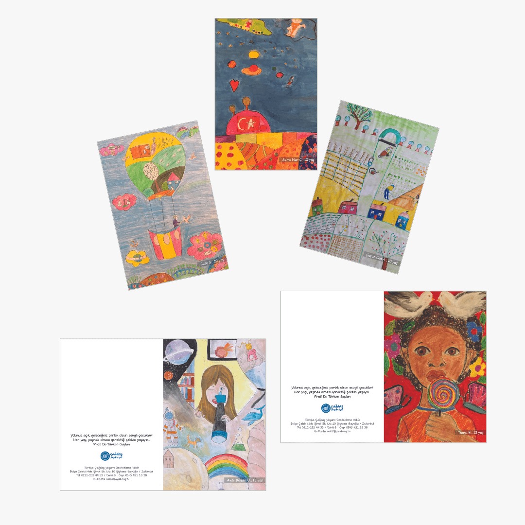 Gönüllü öğrencilerimizin yaptığı eserler kullanılmıştır. Davetiyeler karışık olarak 5’li set halinde satılmaktadır. Fiyatlara 2 renk iç baskı ve zarflar dahildir. Baskı için bizimle bağlantıya geçiniz. ([email protected])
