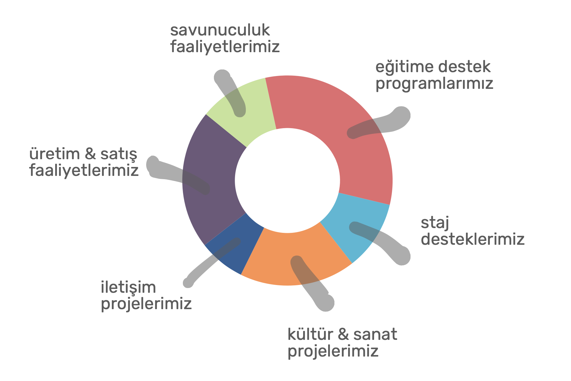 Projelerimize kaynak geliştirmek amacıyla bağış topluyor, dezavantajlı gruplara fırsatlar sunarak sosyal fayda sağlıyoruz.